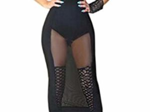 Zeagoo Damen Sexy Bodycon Kurzsam Kleid Lang Partykleider Mesh Patchwork Durchsitig Clubwear