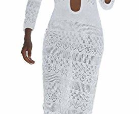 ZIYYOOHY Damen Sexy Strandkleid Stricken Spitze Maxikleid Sommerkleid Lace Bikini Kleid Strandponcho Mit Trompetenärmel…