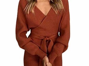 ZUMUii Butterme Damen Sexy V-Ausschnitt Strickkleid Langarm Sweater Stretch Jerseykleid Schlank Kleider Baumwoll Mini…