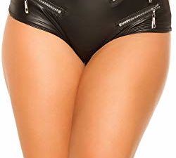 iEFiEL Wetlook Damen Hotpants Ouvert-Slip mit Spitze Rüsche Leder Lack Shorts Strings Erotik Dessous Unterwäsche