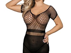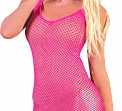 Damen Mini Netzkleid Catsuit Schwarz Rot Dessous Fischnetz Gogo Reizwäsche S/M Farbe schwarz