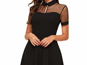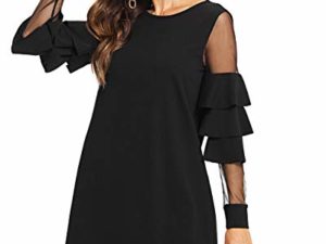 DIDK Damen Elegant Kleider Rundhals Minikleider Locker mit Netzstoff und Glockärmeln