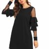 Auxo Damen Karierte Kleider V-Ausschnitt Langarm Minikleid Oversize Bluse Tops Hemd