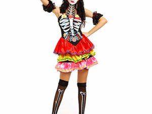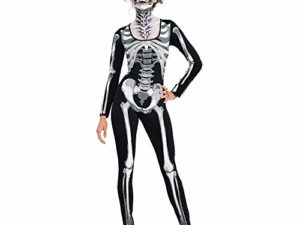 Anladia Damenkostüm Skeleton Skelett Kostüm Karneval Fasching Halloween Horrorkleid M