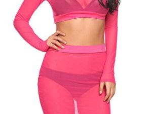 Avidlove Damen Transparent Netz Dessous Langarmbody Ouvert Reizwäsche mit Strumpfhaltergürtel Netzkleid Clubkleid…