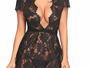 ADOME Sexy Erotik Negligee Dessous Set Reizvolle Transparent Lingerie Nacht Wäsche Reizwäsche Babydoll Sleepwear…