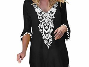 Asskdan Damen Boho Weben Einzigartig Bikini Cover Up Sommerkleid Strandkleid Lang – One Size