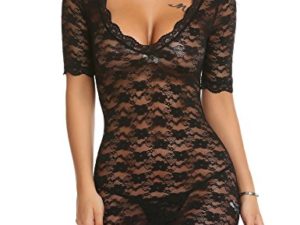 Avidlove Damen Sexy Dessous Negligee Mesh Kleid Hollow Out Nachthkleid Chemise Babydoll Fischernetzt Minikleid One Size…