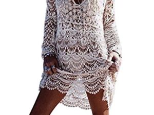 AmyGline Oberteil Damen Strandkleid Pom Pom Trim Quaste Spitze Strandponcho Badeanzug Bikini Cover Up Bluse Tunika Pareo…