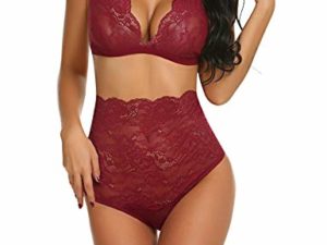 ADOME Damen Dessous Set Sexy BH und Slip Set Lingerie Höhe Taille Unterhose Nachtwäsche Unterwäscshe Lace Spitze V…